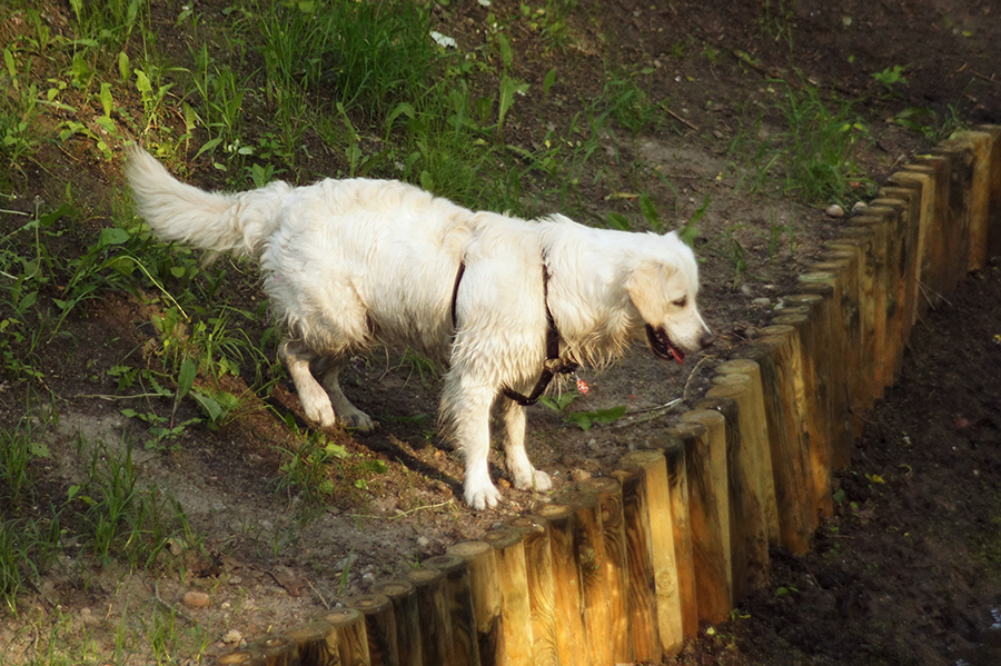 Lenka na spacerach nadal żyje w swoim zamkniętym świecie jedynie od czasu do czasu kontrolując czy pan z panią nie odchodzą zbyt daleko. Na szczęście Ozzy pilnuje Lenki bardziej i jak ta się gdzieś zapuści to po nią biegnie i przyprowadza. Bo nasze wołanie jest niestety niesłyszalne.