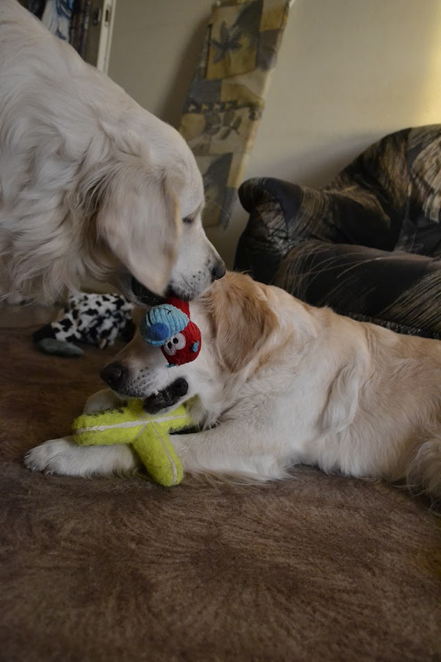 Mała czuje się bardzo dobrze. Wygląda na to, że nic ją nie boli. W domu kotłują się z Ozzim a wygląda to to taj, że Ozzy po wytarmoszeniu lenkowego ucha kładzie się na plecach podgryzając małą a ta zadaje mu gryzo-ciosy gdzie popadnie a potem po nim depcze i skacze powarkując.
