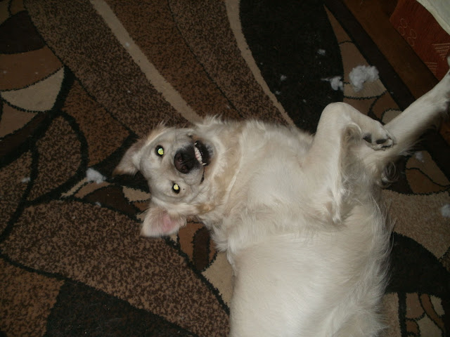 Blanka równie mocno cieszyła sie na nasz widok jak i na widok Asi po powrocie z pracy. Jednak goldeny szybko przyzwyczajają się do nowego domu. Dziękuję Asi za wszelkie wskazówki od poniedziałku idziemy na szkolenie i zobaczymy jak to będzie.