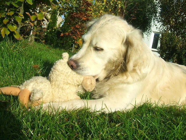 Wczoraj po raz pierwszy od tylu dni Sara się ożywiła, wytarzała się w trawie i wzięła piłkę do zabawy. Nic cudowniejszego nie może cię spotkać jak zdrowiejąca i weselsza Sarcia !!!!!!!!!!!!